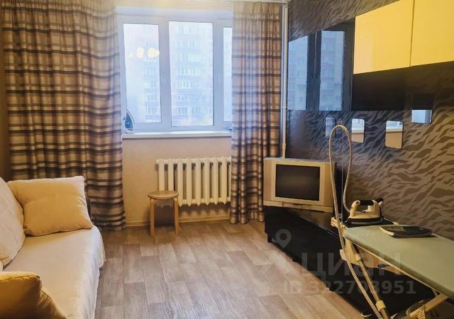 В квартире сделан качественный евроремонт. В самой комнате - большой раскладной диван, ТВ, стол, мебельная стенка. На кухне большой 2х камерный холодильник, кухонный гарнитур под единой столешницей, вытяжка, обеденный стол, телевизор, СВЧ печь. Санузел совмещенный, кафель до потолка, глубокая ванна, раковина, унитаз, полотенцесушитель, СМАвтомат Samsung. В прихожей большой вместительный шкаф - купе для одежды и обуви, на нём зеркало до потолка! Железная дверь и тамбур на 2 квартиры. Спокойные соседи, семья. Окна выходят во двор. Есть балкон.